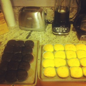 I think it is quite funny and fitting that I am watching Julie & Julia coincidentally and trying to make cupcakes. I make cupcakes all the time but this time I tried these very cool new cupcakes liners from Bed Bath & Beyond. They are pretty awesome because you do not need to use a muffin pan-you just place them on a cookie pan and voilà! Well, almost. I placed all the cupcake liners soooo close to each other and I did not think about them expanding (rookie mistake, right?). So now I have cupcake brownies….or Square Cupcakes! O well!