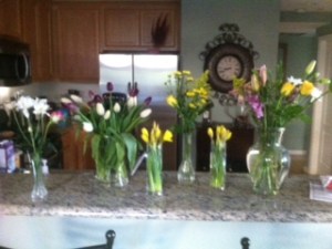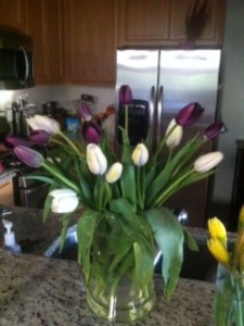 I love everything about Spring! Well except for one thing-my allergies. They have been so bad lately from all the pollen. But my favorite part of Spring is all the flowers that are in bloom. There are the prettiest Cherry blossom trees right outside my house and they are gorgeous. When the petals fall to the ground the sidewalks are covered in baby pink hues. I just love it! I decided to go to Trader Joe’s this weekend and stock up on flowers to brighten my home. Every time I walk past them I just smile and I just love the smell of fresh flowers!