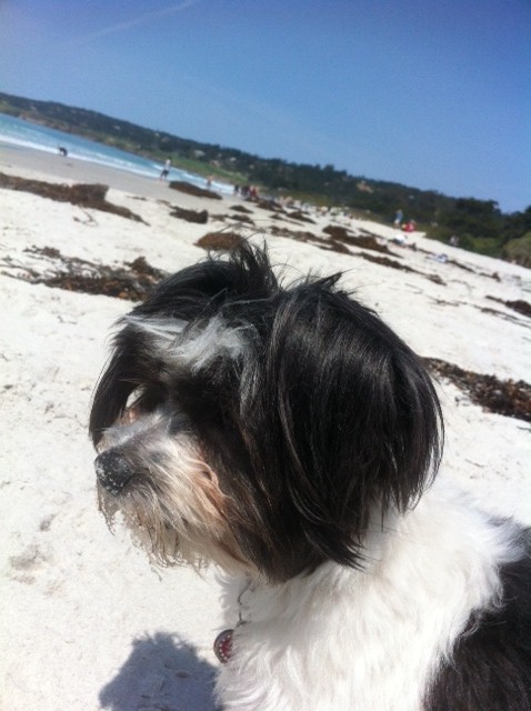 Today I decided it would be a perfect day for a mini road trip. I jumped in the car and took my little Gracie to Carmel-by-the-Sea. There is the most beautiful beach located in Carmel, at the very end of Ocean Ave and it is dog friendly! There must have been hundreds of dogs running up and down the beach..large, small, crazy, timid…it was so cute.